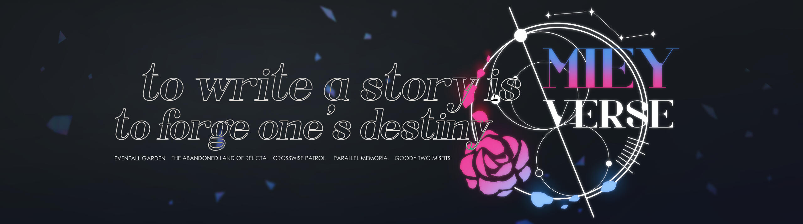 MIEYVERSE is a collection of stories featuring my original characters. There are multiple timelines, planes and dimensions and they eventually collide. Each character and each plot are interconnected in a way, creating an ever-expanding journey for them.Various talented people have worked together with me to bring this project to life. A huge thanks to the amazing musicians who made the theme songs and my friends who have helped me with the designs of the world.